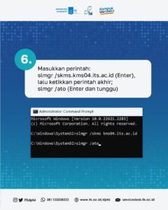6. Type script: slmgr /skms kms04.its.ac.id , then enter;