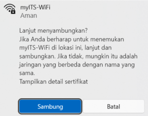 2. Cari SSID myITS-WiFi, centang Connect automatically, dan klik tombol Sambung/Connect.