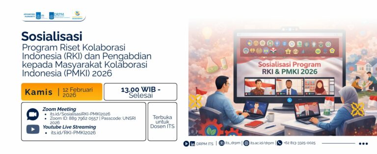 Direktorat Riset dan Pengabdian kepada Masyarakat (DRPM) ITS mengundang seluruh dosen dan peneliti di lingkungan ITS. Undangan ini ditujukan untuk mengikuti Sosialisasi Program Riset Kolaborasi Indonesia (RKI) dan Pengabdian