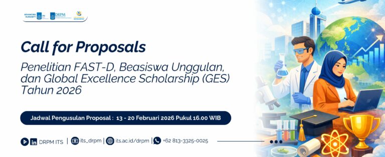 Institut Teknologi Sepuluh Nopember (ITS) melalui Direktorat Riset dan Pengabdian kepada Masyarakat (DRPM) membuka penerimaan Proposal Penelitian FAST-D, Beasiswa Unggulan, dan Global Excellence Scholarship (GES) Dana ITS Tahun 2026.