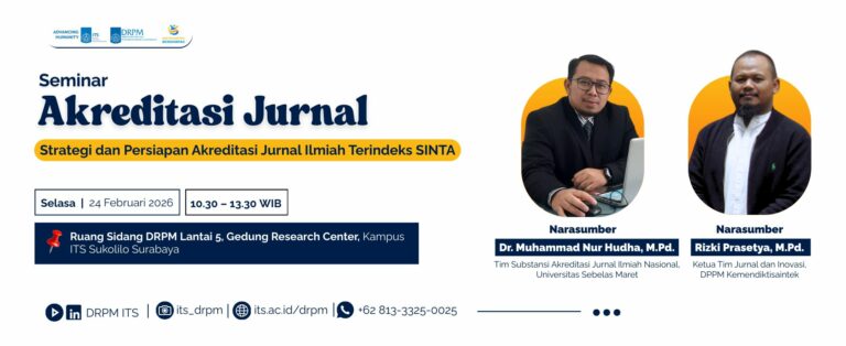 Dalam rangka meningkatkan mutu pengelolaan jurnal ilmiah di lingkungan Institut Teknologi Sepuluh Nopember (ITS) serta mempersiapkan proses akreditasi jurnal nasional terindeks SINTA, kami akan menyelenggarakan seminar dengan tema: “Strategi