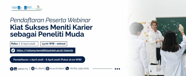 Menindaklanjuti surat Direktur Bina Talenta Penelitian dan Pengembangan, Nomor 170/DST/C2/DT.05.00/2026 tanggal 26 Maret 2026 perihal Surat Pendaftaran Peserta Webinar “Kiat Sukses Meniti Karier sebagai Peneliti Muda, bersama ini kami