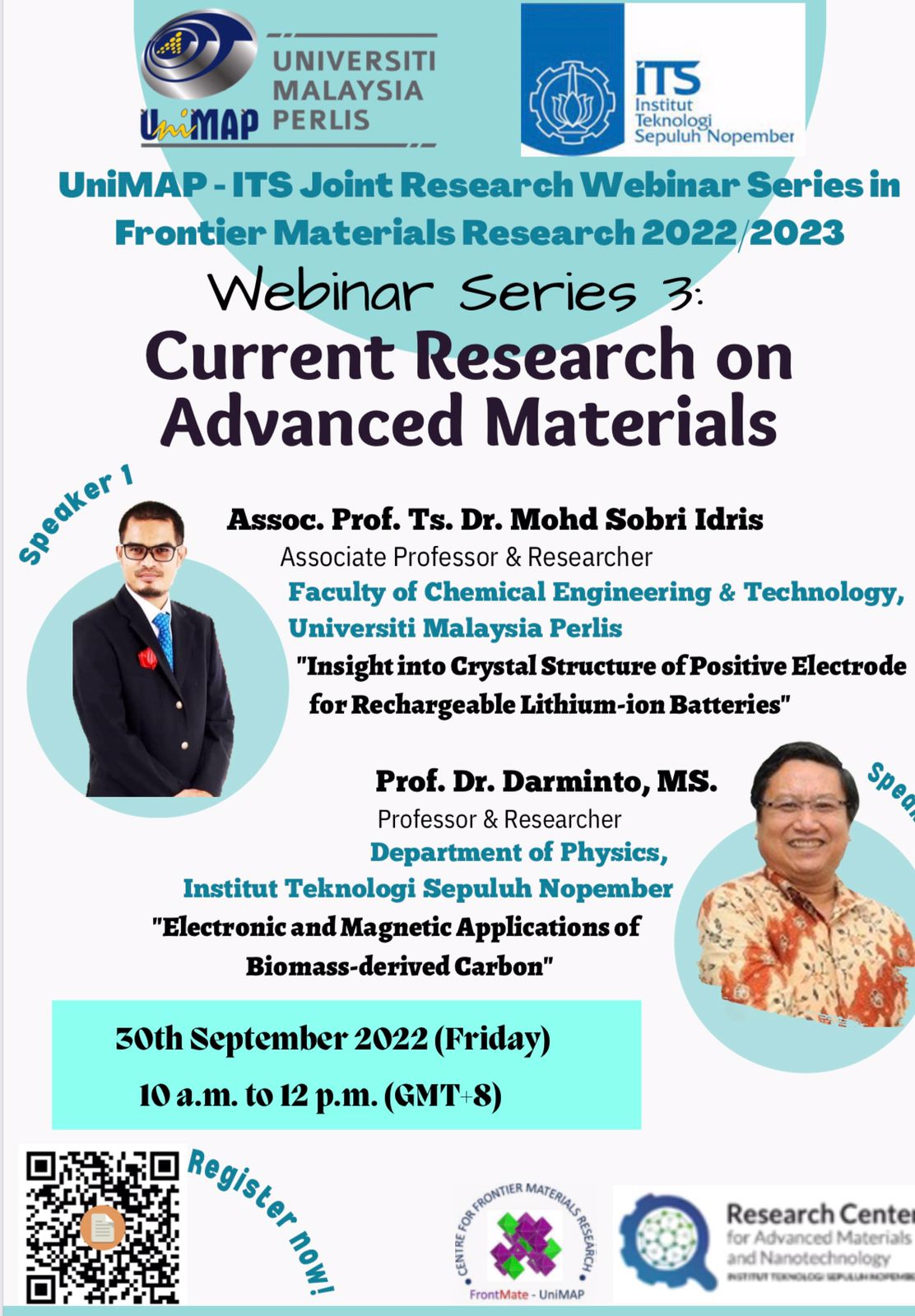 UniMAP-ITS Joint Research Webinar Series in Frontier Material Research 2022/2023 kembali hadir dalam menyelenggarakan acara Webinar Seires 3 dengan judul Current Research on Advanced Materials.