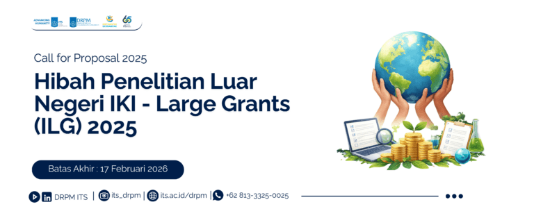 Direktorat Riset dan Pengabdian kepada Masyarakat (DRPM) Institut Teknologi Sepuluh Nopember (ITS) dengan ini menginformasikan kepada seluruh civitas akademika ITS tentang kesempatan pendanaan internasional melalui IKI Small Grants –