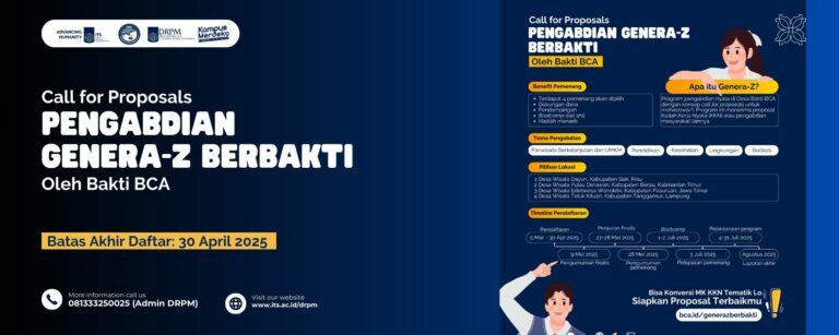 Sehubungan dengan Program Penelitian dan Pengabdian Kepada Masyarakat – ITS Tahun 2025, DRPM ITS memberi kesempatan kepada dosen/tenaga kependidikan (tendik) di lingkungan ITS untuk mengajukan proposal pada Program Penelitian