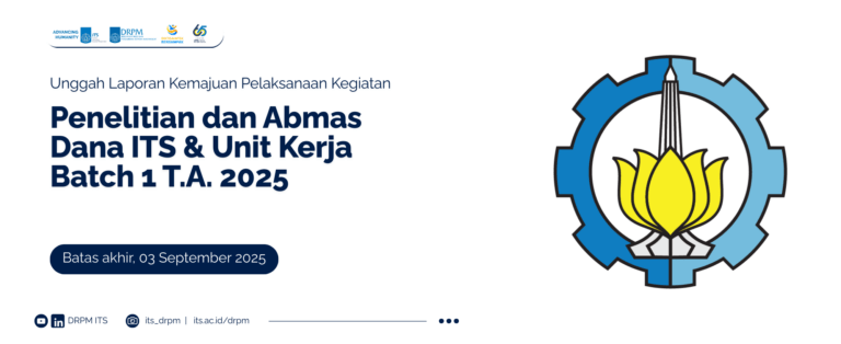 Berdasarkan Surat Perjanjian Penelitian dan Abmas Dana ITS & Unit Kerja Batch 1 Tahun 2025 pada Pasal 9 Ayat 3, kami mohon bantuan Bapak/Ibu untuk menyampaikan kepada para ketua