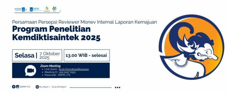 Sehubungan dengan pelaksanaan kegiatan Monitoring dan Evaluasi Internal Laporan Kemajuan Program Penelitian Dana Kemdiktisaintek Tahun Anggaran 2025 yang akan diselenggarakan pada tanggal 13-17 Oktober 2025, maka kami mengundang Bapak/Ibu