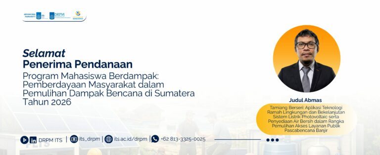 Direktorat Riset dan Pengabdian kepada Masyarakat (DRPM) Institut Teknologi Sepuluh Nopember menyampaikan pemberitahuan kepada seluruh penerima manfaat Grant of HETI ADB ITS Tahun Anggaran 2025 Skema Post Doctoral Research