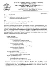 Pengumuman Pembukaan Proposal Penelitian dan Pengabdian kepada Masyarakat Tahun 2022 (Kemendikbudristek)