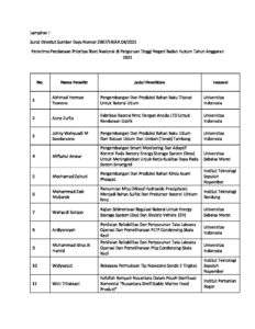 Lampiran Surat Penerima Pendanaan Prioritas Riset Nasional di PTNBH Tahun 2021