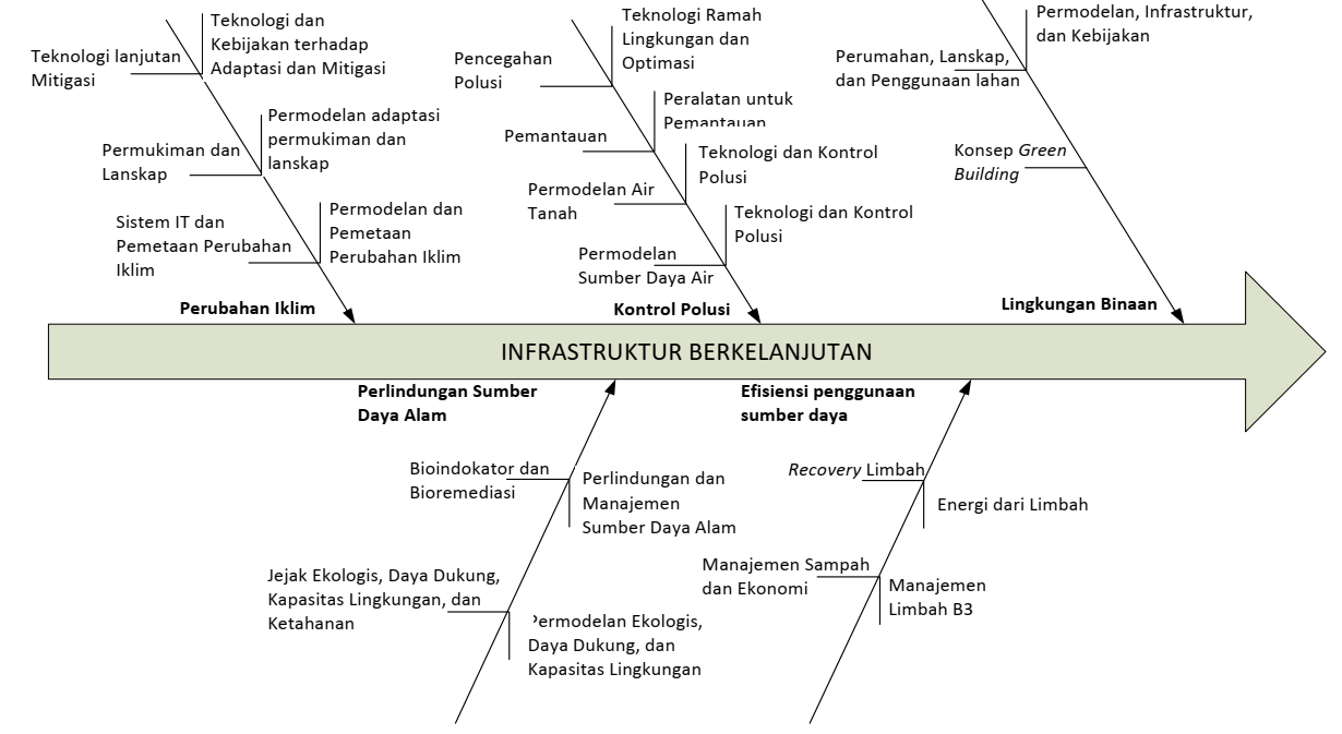 1. Struktur, bangunan sipil, rekayasa tanah, dan mekanika tanah. 2. Infrastuktur dalam bidang transportasi darat dan laut serta kepelabuhanan. 3. Teknologi energi, getaran, dan tingkat kebisingan. 4. Hidrologi, hidro-oceanografi serta hidrogeologi. 5. Coastal zone management. 6. Geoteknik, geologi, dan geomorphologi. 7. Geothermal, rock physics, dan geofisika lingkungan. 8. Proses industri dan teknologi bersih. 9. Pengolahan air bersih, air limbah, dan pengolahan limbah padat, cair, gas, dan B3. 10. Advance treatment process untuk air limbah dan lindi. 11. Monitoring pencemaran, environmental risk assesment, dan environmental impact assesment. 12. Pemulihan akibat pencemaran (bioremediasi) lingkungan. 13. Penataan ruang, lansekap, arsitektur, permukiman dan perumahan, building thermal. 14. Sustainable urban growth 15. Biodiversitas, ekodinamika, mikrobiologi/ekofisiologi, dan zoologi–imunologi baik di flora dan fauna darat maupun biota di perairan. 16. Penanganan hama dengan serangga (insect ecology). 17. Ekonomi lingkungan dan hukum lingkungan. 18. Sosial ekonomi, sosial budaya, dan kependudukan. 19. Kesehatan masyarakat dan kesehatan lingkungan econometric.