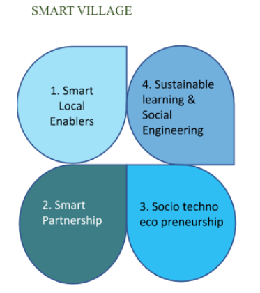 Smart village merupakan sebuah pengembangan dari konsep smart city. Pada dasarnya, konsep smart village merupakan sebuah konsep dimana sebuah desa dapat menyelesaikan permasalahannya dengan cerdas. Konsep smart village juga harus didukung oleh beberapa komponen agar penerapannya memberikan dampak positif dan maksimal. Smart village digagas untuk memanfaatkan teknologi informasi bagi masyarakat epdesaan sebagai upaya untuk mengedukasi masyarakat lokal untuk pelaksanaan program pelayanan public yang lebih berkualitas deng memanfaatkan teknologi informasi. Tidak hanya berfokus pada kecanggihan teknologi di suatu desa saja smart village juga diharapkan dapat mengubah kondisi masyarakat menuju keadaan yang lebih baik dan sejahtera, menumbuhkan kesadaran di masyarakat akan pentingnya sebuah inovasi dalam usaha kecil yang berpotensi menciptakan kewirausahaan, dan meningkatkan kualitas pelayanan di desa.