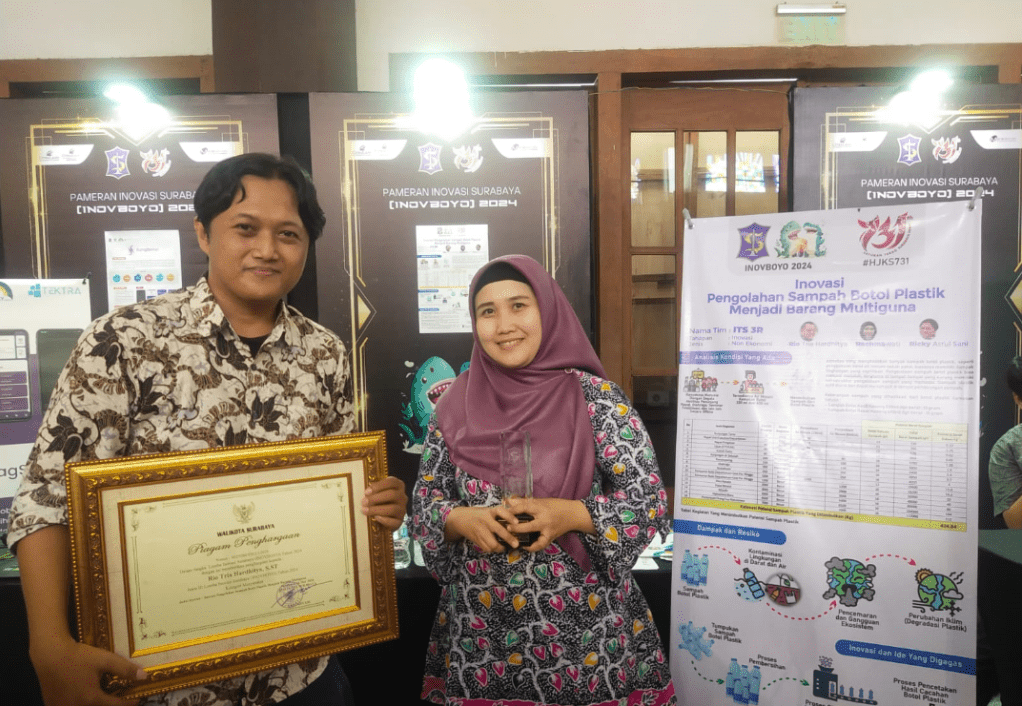 The ITS3R team from the Faculty of Intelligent Electrical and Informatics Technology (ELECTICS) ITS has achieved another milestone by winning Third Place in the Community category at Inovboyo 2024. Led by Rio Tria Hardhitya SST, the team, consisting of Rachmawati from Actuarial Science and Rifki Asrul Sani from Information Systems, introduced an innovative process to convert plastic bottle waste into multifunctional items, providing a concrete solution to environmental issues. Rio Tria Hardhitya SST explained that the numerous activities on campus have led to an accumulation of plastic bottle waste. “Most of these activities also provide bottled water in significant quantities,” he stated. Based on these findings, the ITS3R team designed an innovation to process plastic bottle waste, aiming to mitigate the harmful effects of plastic bottle waste, such as environmental contamination and ecosystem disruption.