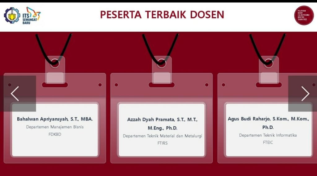 Congratulations to Agus Budi Raharjo, S.Kom., M.Kom., Ph.D. as The Best Lecturer Participant in the 2020 Non-PNS Staff Basic Training