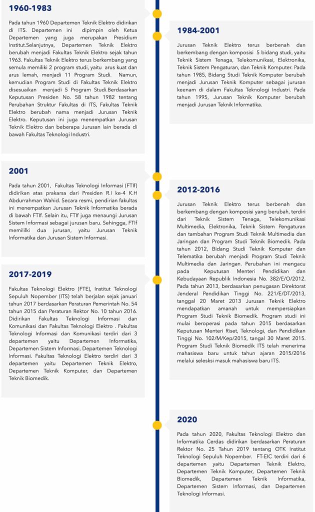 Halaman ini menyajikan informasi komprehensif mengenai identitas akultas Teknologi Elektro dan Informatika Cerdas, mencakup catatan sejarah, struktur organisasi, landasan hukum, serta rencana strategis dalam memajukan pendidikan dan inovasi di ITS.