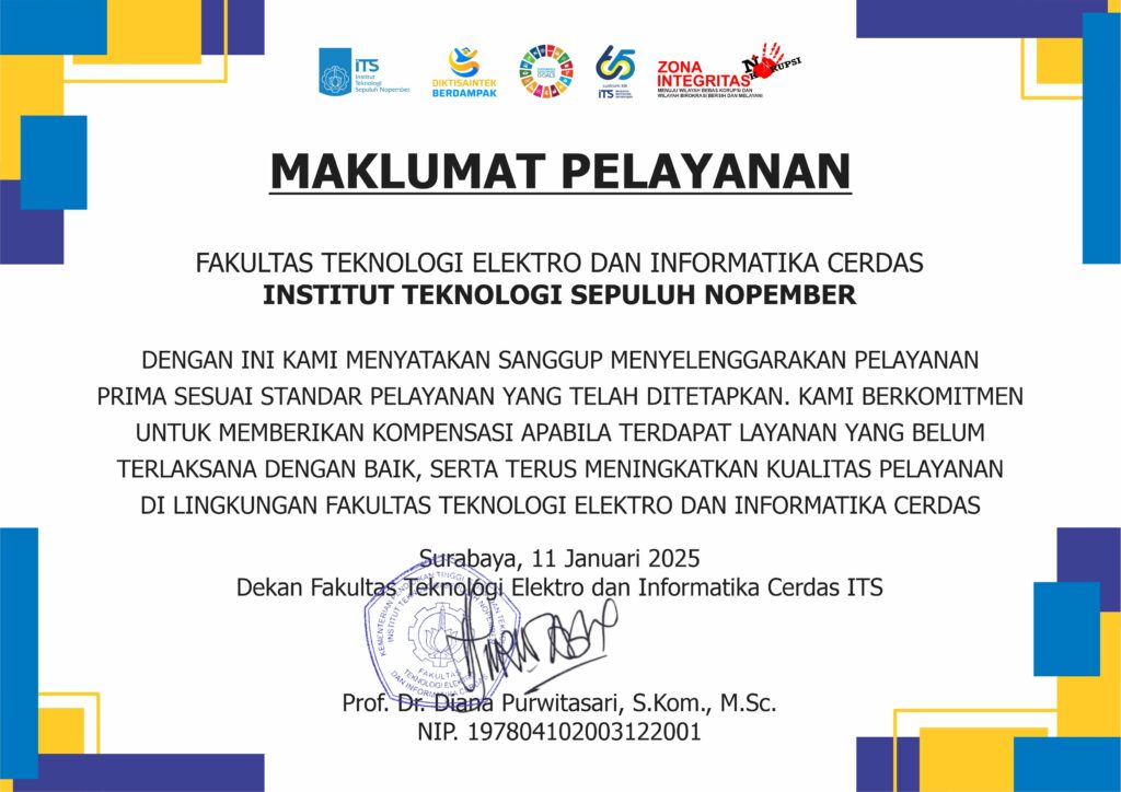 Sebagai bagian dari upaya mewujudkan tata kelola pemerintahan yang bersih, efektif, dan melayani, Fakultas Teknologi Elektro dan Informatika Cerdas (FTEIC) di bawah naungan Institut Teknologi Sepuluh Nopember (ITS) secara konsisten membangun Zona Integritas (ZI) menuju predikat Wilayah Bebas dari Korupsi (WBK) dan Wilayah Birokrasi Bersih dan Melayani (WBBM). Salah satu fokus utama dalam pembangunan ZI adalah Peningkatan Kualitas Pelayanan Publik yang menjadi wajah utama dari pelayanan institusi kepada masyarakat.