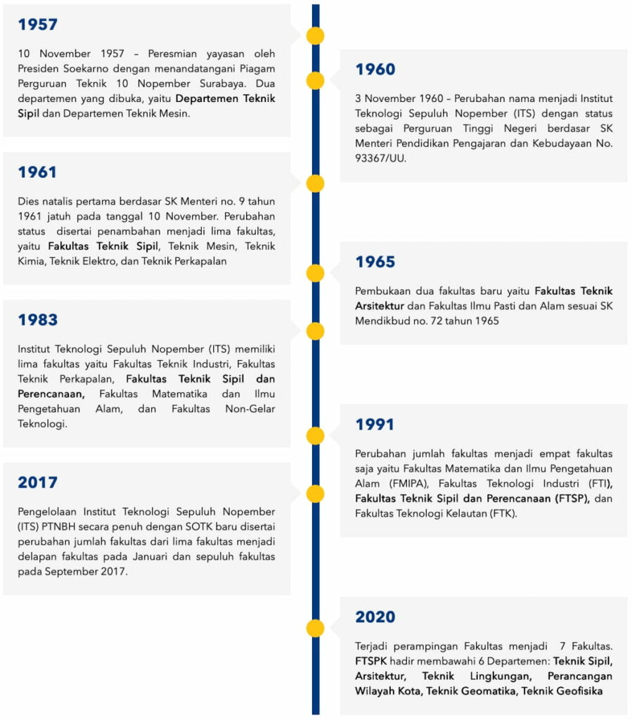 Selamat datang di website resmi Fakultas Teknik Sipil, Perencanaan dan Kebumian (FT-SPK). FT-SPK terdiri dari enam Departemen, yaitu Teknik Sipil, Arsitektur, Teknik Lingkungan, Perencanaan Wilayah Kota, Teknik Geomatika, dan Teknik Geofisika. Keenam departmen ini memiliki prodi s1 sebanyak 6 prodi dan prodi paska sarjana (s2 dan s3) sebanyak 9 prodi.