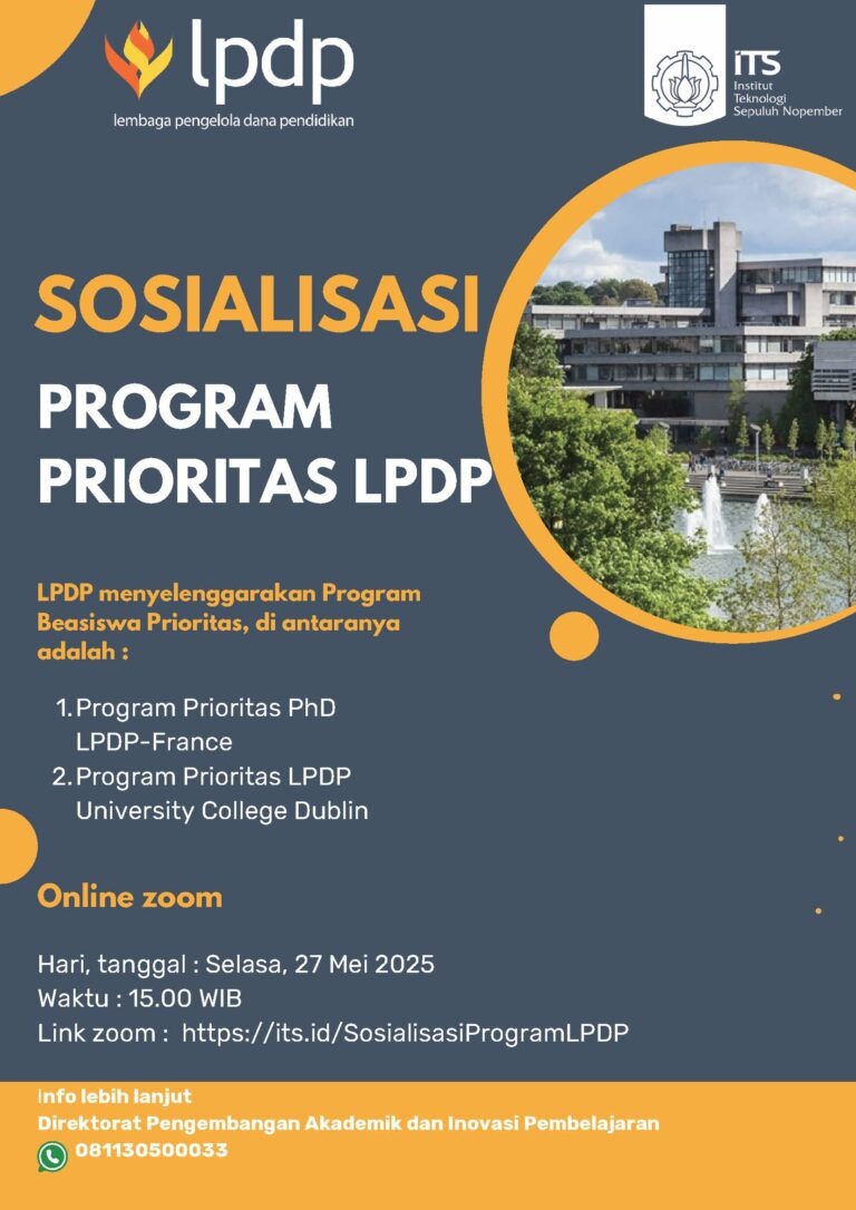 Undangan Sosialisasi Program Prioritas LPDP Bagi dosen, Tendik dan Mahasiswa, Selasa, 27 Mei