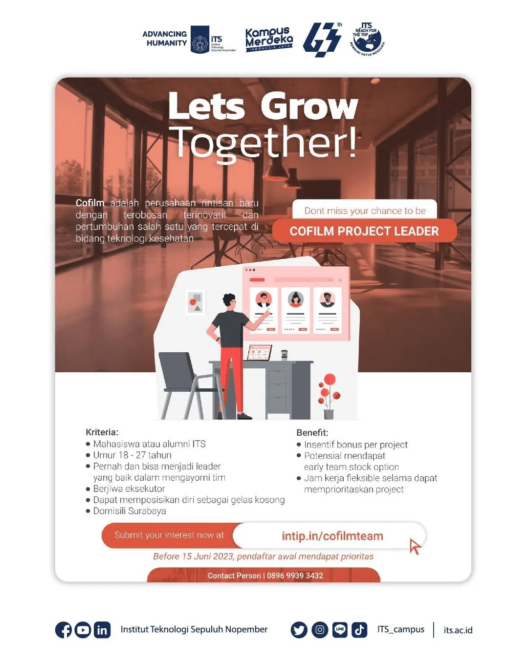 Kriteria 1. Mahasiswa atau alumni ITS 2. Umur 18-27 tahun 3. Pernah dan bisa menjadi leader yang baik dalam mengayomi team 4. Berjiwa Eksekutor 5. Dapat memposisikan diri sebagai gelas kosong 6. Domisili Surabaya