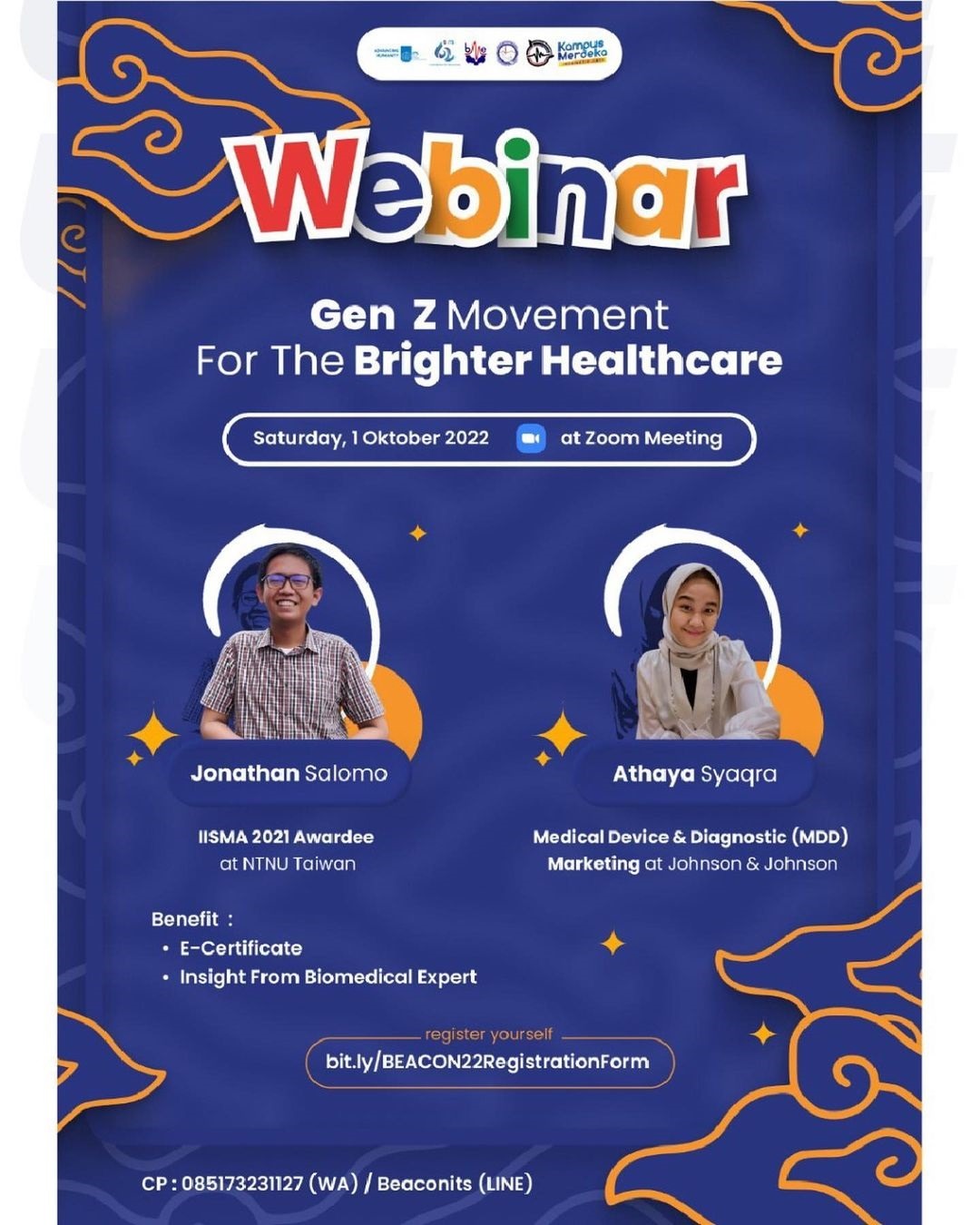 BEACON 2022 Webinar is an online webinar which is a part of the BEACON 2022 Grand Opening organized by Departement of Biomedical Engineering Sepuluh Nopember Institute of Technology.