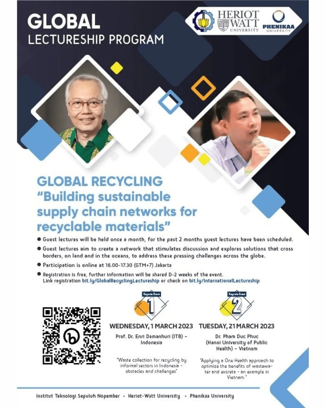 Pusat Penelitian Infrastruktur dan Lingkungan Berkelanjutan ITS mengadakan kerjasama dengan Herriot Watt University-UK dan Phineeka University Vietnam dalam Webinar Mengenai Recycling Waste dan mengangkat tema:
