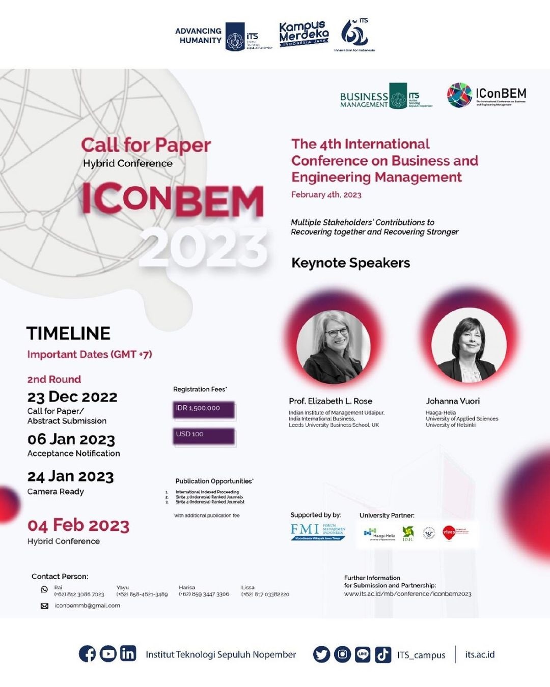 For more information, please visit our official website: www.its.ac.id/mb/conference/iconbem2023