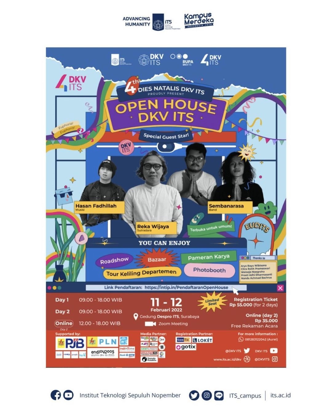 Gimana – gimana?! seru banget kann? yuk langsung cek tanggal dan harinya pada info di bawah inii : π Gedung Despro DKV ITS (Limited Seat) dan via zoom π 11-12 Februari 2022 (DAY 1 : 09.00 – 17.00) (DAY 2 : 09.00 – 18.00) (Online event : 12.00-18.00) πΈ :55k for two days 35k for online event + free rekaman acara