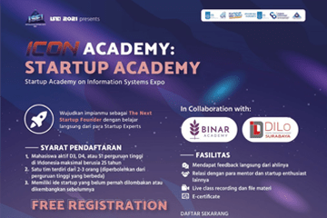Acara ICON ACADEMY Tema STARTUP ACADEMY Startup Academy on Information Systems Expo Hari dan