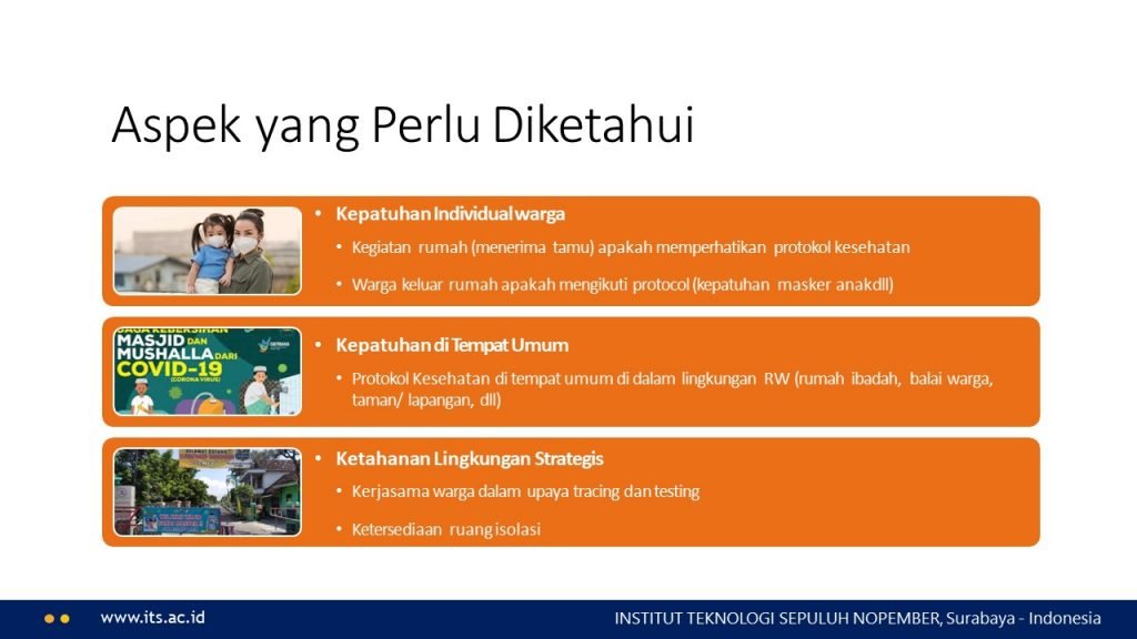 Saat ini kondisi Pandemi Covid19 di Surabaya, Gresik dan Sidoarjo masih dalam status merah. Kami memanggil mahasiswa untuk mengambil peran dalam membangun ketahanan warga selama masa pandemi, dengan tetap memperhatikan aspek kesehatan dan keselamatan diri. Format kegiatan berupa edukasi publik / kontribusi informasi ke Gugus Tugas tingkat RW, yang bisa dilakukan secara online/offline. Aktivitas ini akan mendapatkan sertifikat apresiasi dari Pemprov Jatim dan Konversi ke Mata Kuliah KKN bagi mahasiswa yang belum mengambil KKN. Kegiatan akan berlangsung sampai bulan Desember 2020.
