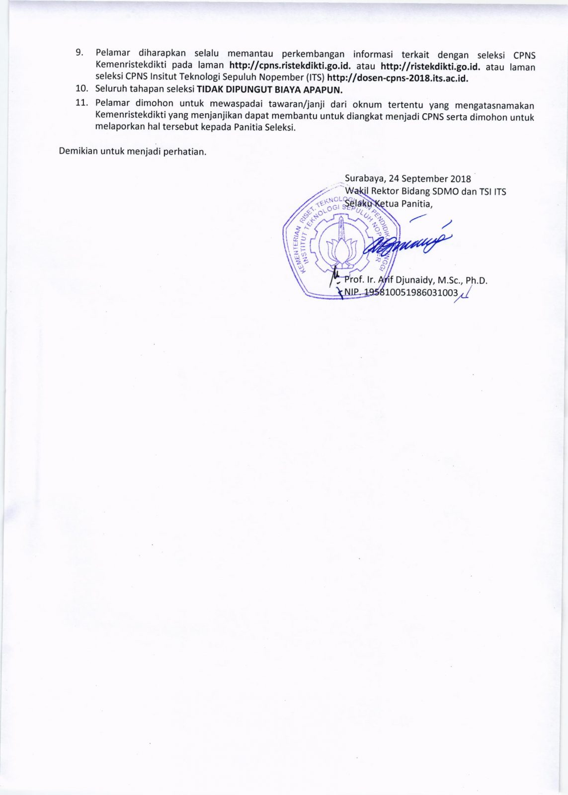 Penerimaan CPNS 2018 di ITS diorganisasi oleh Biro Umum ITS. Untuk informasi lebih lanjut dan mengunduh berkas dalam bentuk pdf, silahkan mengakses melalui laman berikut.