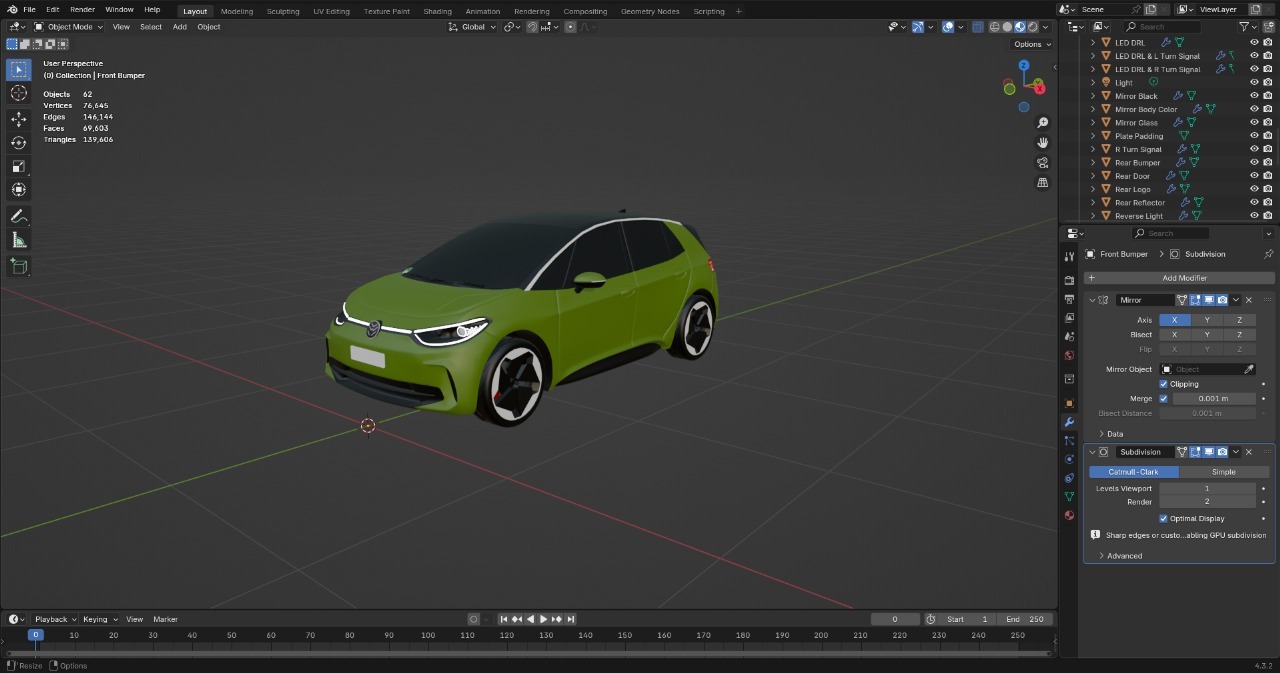 Gambar: Model Mobil 3D Buatan Egan, dikerjakan Menggunakan Blender.