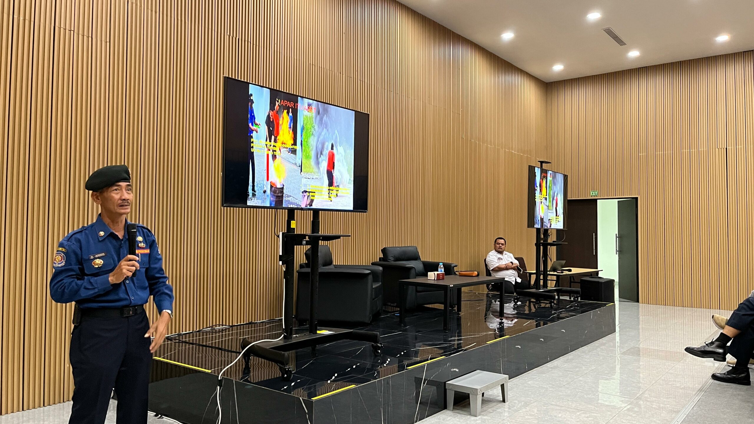 Sesi pelatihan dimulai dengan pemaparan materi oleh Drs. M. Mundhir. Dalam presentasinya, beliau membahas strategi response darurat, langkah-langkah pencegahan kebakaran, hingga prosedur evakuasi yang aman. Peserta tampak antusias menyerap wawasan baru yang diberikan.