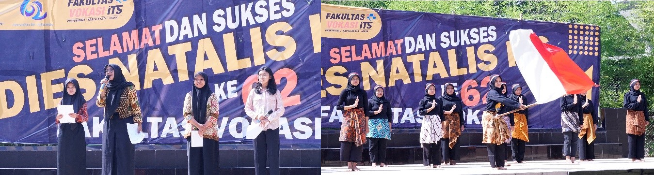 Persembahan Fakultas Vokasi selanjutnya pada Opening Dies Natalis ITS ke – 62 adalah musikalisasi puisi dan tarian. Persembahan musikalisasi dan tarian di Fakultas Vokasi untuk Opening Dies Natalis ITS ke – 62, tidak hanya mahasiswa tingkat atas tetapi juga mahasiswa baru.