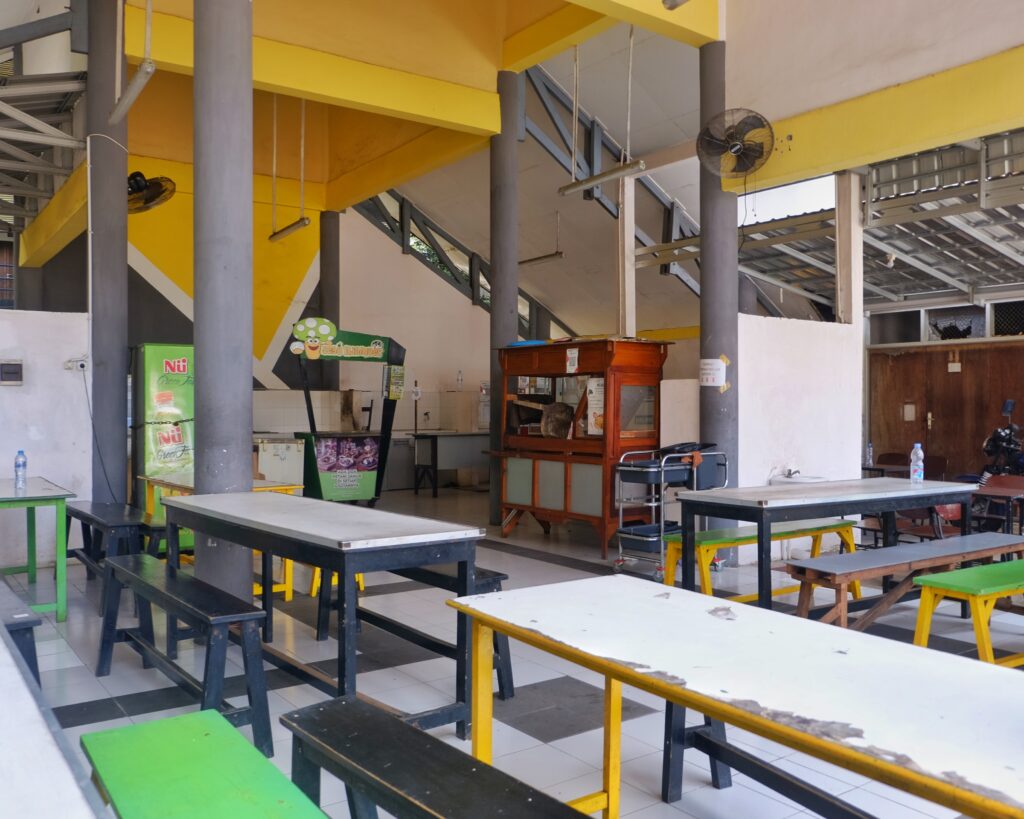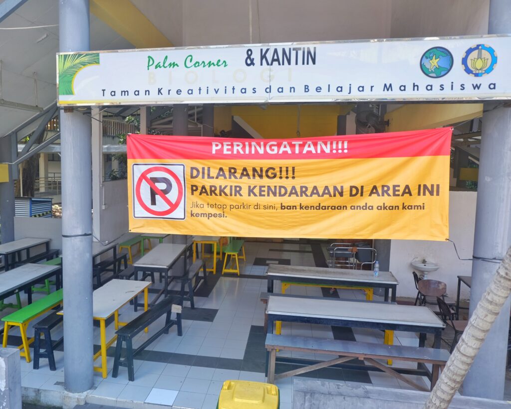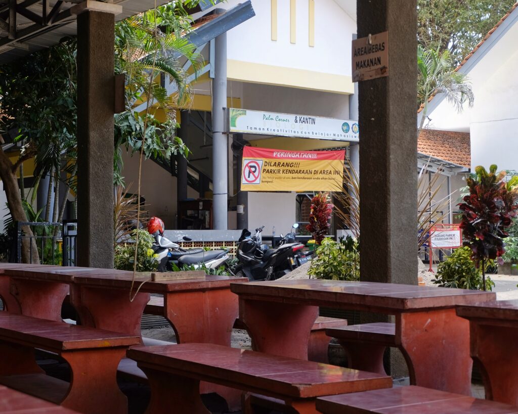 Kantin Biologi ITS, yang dikenal dengan nama Palm Corner & Kantin Biologi, merupakan salah satu fasilitas makan dan ruang santai yang terintegrasi dengan aktivitas mahasiswa di lingkungan FSAD ITS. Terletak di area yang terbuka dan strategis, kantin ini menyatu dengan Taman Kreativitas dan Belajar Mahasiswa, menjadikannya bukan hanya tempat untuk menikmati makanan, tetapi juga sebagai ruang interaksi sosial, diskusi, hingga kegiatan organisasi. Nuansa cerah dan bersahabat hadir melalui penggunaan warna kuning dan hijau pada interior dan kursi-meja, serta adanya pepohonan yang menambah kesejukan lingkungan sekitar.
