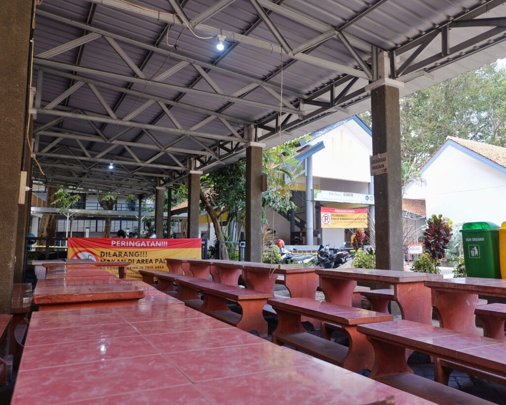 Kantin ini menyediakan berbagai jenis makanan dan minuman yang dijajakan oleh beberapa tenant, dari menu berat hingga jajanan ringan. Area tempat duduknya cukup luas dan terdiri dari dua bagian utama: area indoor dengan meja kayu panjang serta area outdoor beratap dengan meja ubin merah yang sering digunakan untuk makan bersama atau ngobrol santai. Kebersihan kantin dijaga dengan baik, didukung oleh fasilitas cuci tangan dan sistem pengelolaan sampah terpisah. Kantin ini juga memiliki himbauan tertib area, seperti larangan parkir dan zona bebas makanan, sebagai bentuk upaya menciptakan kenyamanan bersama. Dengan fasilitas yang lengkap dan atmosfer yang terbuka, Kantin Biologi ITS menjadi tempat yang mendukung keseimbangan antara belajar, istirahat, dan bersosialisasi.