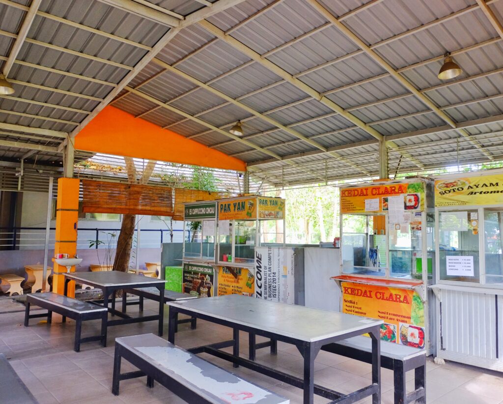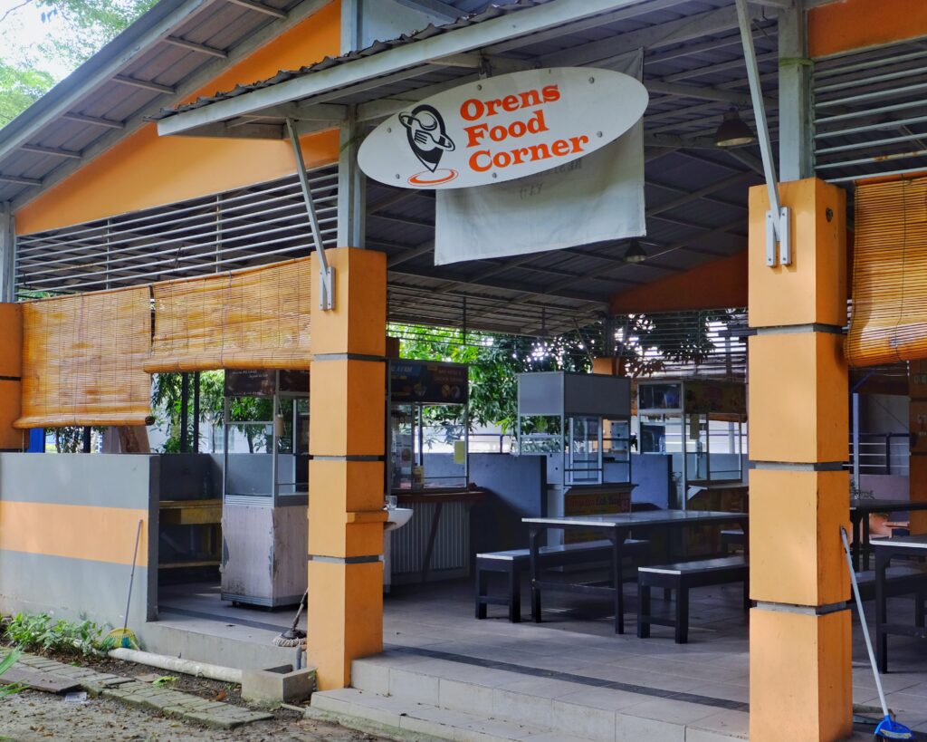 Di dalamnya terdapat berbagai tenant makanan seperti Kedai Clara, Pak Yan, hingga gerai minuman dan makanan ringan lainnya, yang menyajikan beragam pilihan menu mulai dari soto, mie ayam, nasi katsu, hingga es cappuccino cincau. Kantin ini juga dikelilingi oleh pepohonan rindang yang memberikan udara segar dan menambah kenyamanan suasana. Dengan konsep terbuka, harga terjangkau, dan pilihan makanan yang variatif, Orens Food Corner menjadi tempat andalan bagi mahasiswa Geomatika dan sekitarnya untuk mengisi energi sebelum kembali ke ruang kelas atau laboratorium.