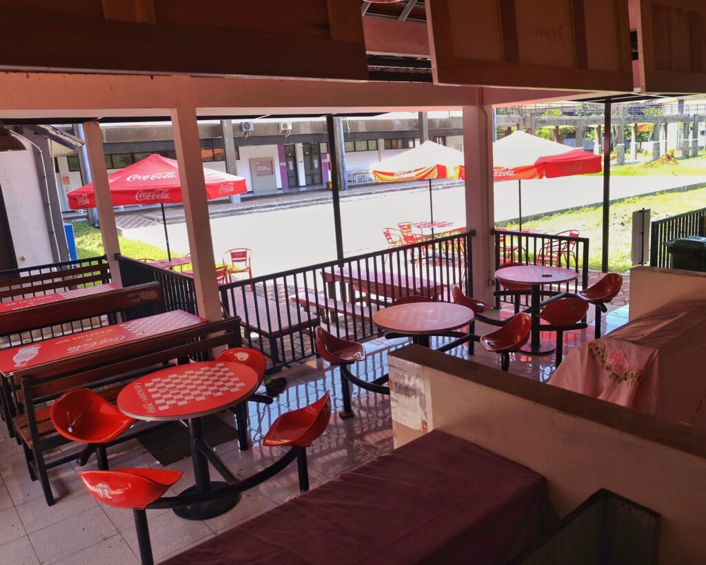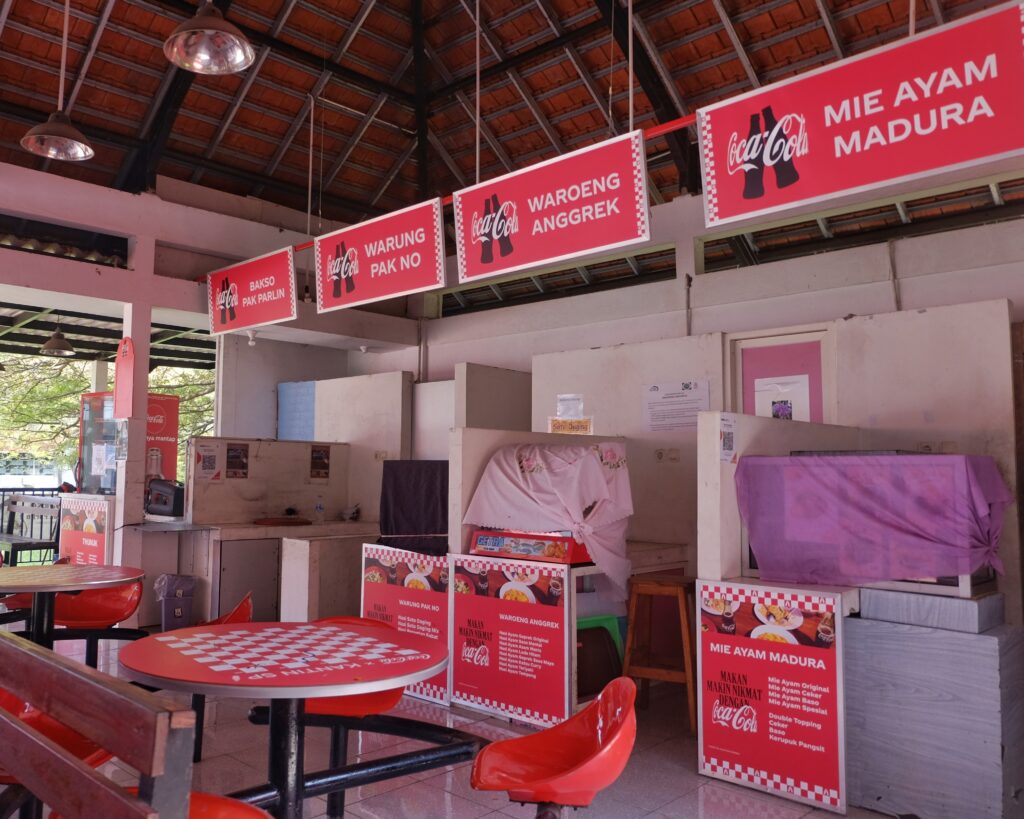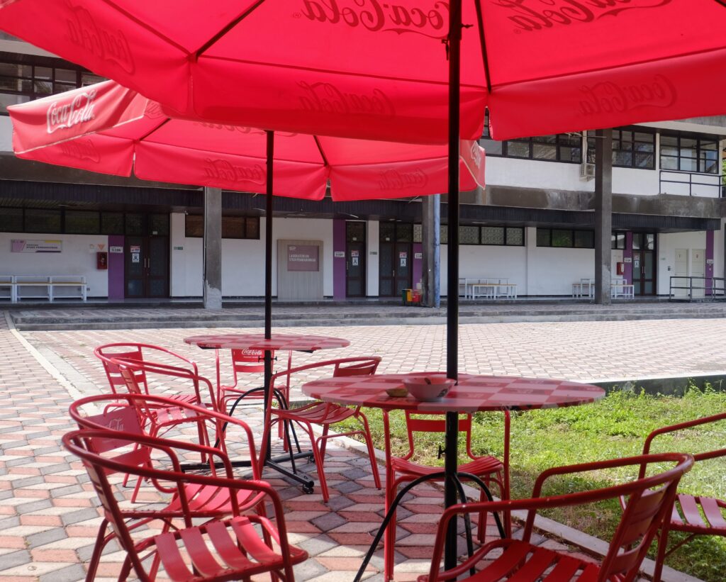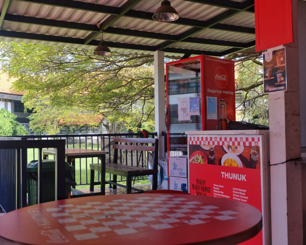 Kantin Studi Pembangunan ITS, dikenal sebagai Food Court SP, merupakan kantin dengan suasana unik dan branding yang khas berkat kolaborasinya dengan Coca-Cola. Terletak di area Departemen Studi Pembangunan, kantin ini hadir dengan nuansa merah yang mencolok dan suasana semi-terbuka yang sejuk, dilengkapi dengan area indoor maupun outdoor yang tertata rapi. Meja-meja bundar berhiaskan desain papan permainan ular tangga menambah kesan playful dan santai bagi para pengunjung.