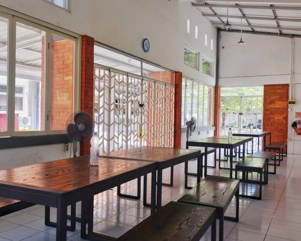 Area kantin juga dilengkapi dengan tempat duduk tambahan di bagian teras luar bagi pengunjung yang ingin menikmati suasana terbuka. Suasana sejuk dari pepohonan di sekitar memberikan kenyamanan tersendiri, cocok untuk mahasiswa bersantai atau makan siang bersama teman. Dengan kebersihan dan kerapian yang terjaga, Kantin Teknik Industri ITS menjadi salah satu pilihan favorit untuk memenuhi kebutuhan kuliner di lingkungan kampus. Jika ada pertanyaan lebih lanjut mengenai fasilitas atau menu yang tersedia, silakan hubungi pengelola kantin atau pihak jurusan terkait.