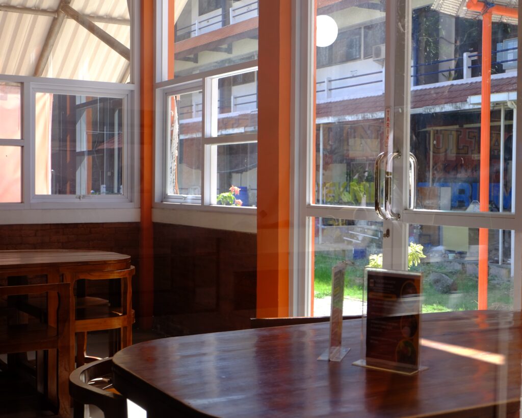 Kantin Fakultas Vokasi ITS merupakan salah satu fasilitas penting yang menunjang kebutuhan mahasiswa, dosen, dan tenaga kependidikan di lingkungan Fakultas Vokasi Institut Teknologi Sepuluh Nopember. Kantin ini terletak di tengah area kampus vokasi dan memiliki bangunan permanen dengan desain modern yang didominasi warna oranye cerah. Suasana di dalam kantin sangat nyaman dengan pencahayaan alami dari jendela-jendela besar serta sirkulasi udara yang baik. Meja dan kursi kayu tersusun rapi, menciptakan ruang makan yang bersih, luas, dan ramah bagi pengunjung.