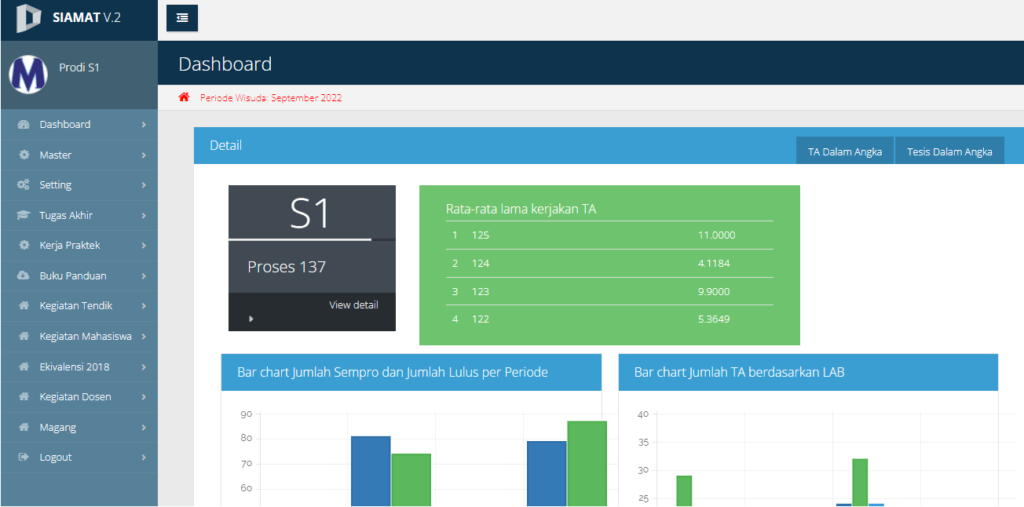 SiAMat, Sistem Aplikasi Matematika dimana aplikasi ini mengakomodasi kebutuhan Monitoring Tugas Akhir, Thesis, Desertasi, Kerja Praktek, Magang, kegiatan Dosen, Tendik ataupun Kegiatan Mahasiswa.