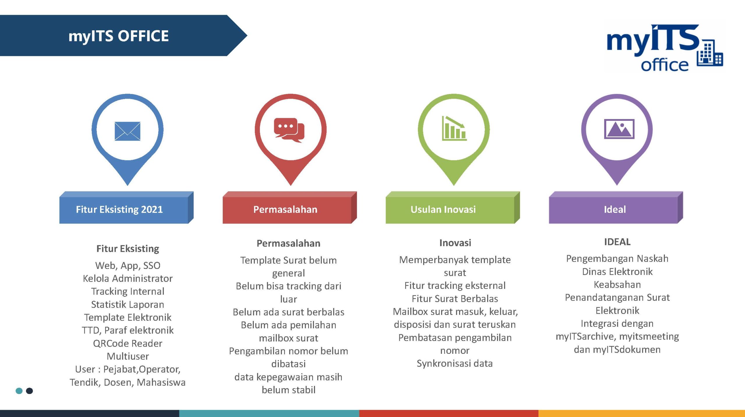 MyITSOffice, Aplikasi yang mengakomodasi persuratan elektronik, dimana aplikasi ini memangkas birokrasi dan mempercepat proses persuratan secara papperless, yang juga menggunakan tandatangan elektronik dengan QRCode untuk menjaga keontentikan dari surat tersebut.