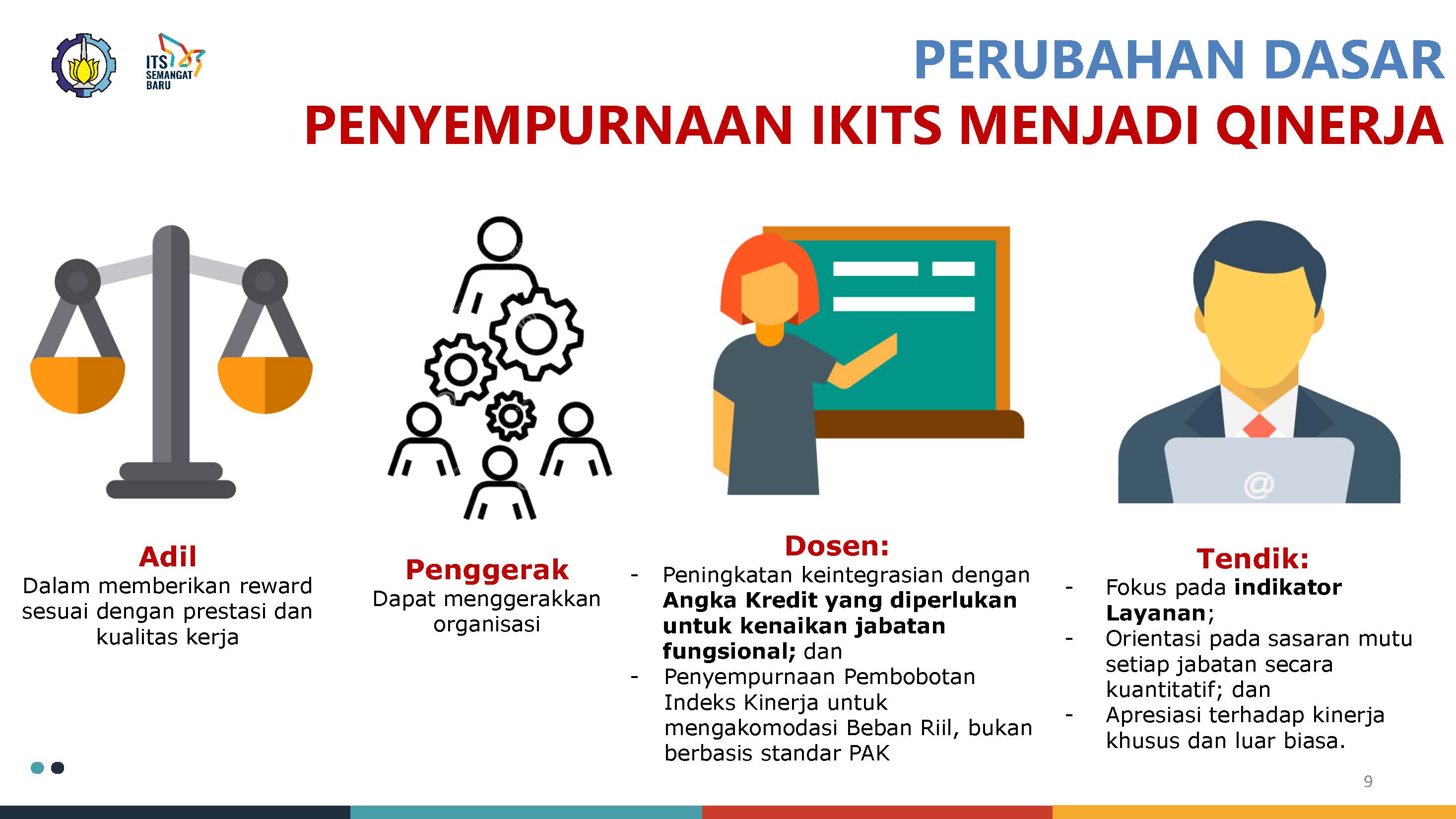 # Kinerja lndividu # Assesment Pegawai # Pelanggaran Disiplin Pegawai Qinerja ITS merupakan Sistem Pengelolaam Kinerja ITS Terintegrasi yang berdasarkan: – Kualitas Bekerja – Kualitas Layanan – Kualitas Capaian Qinerja ini merupakan sinkronisasi kinerja individu dan organisasi