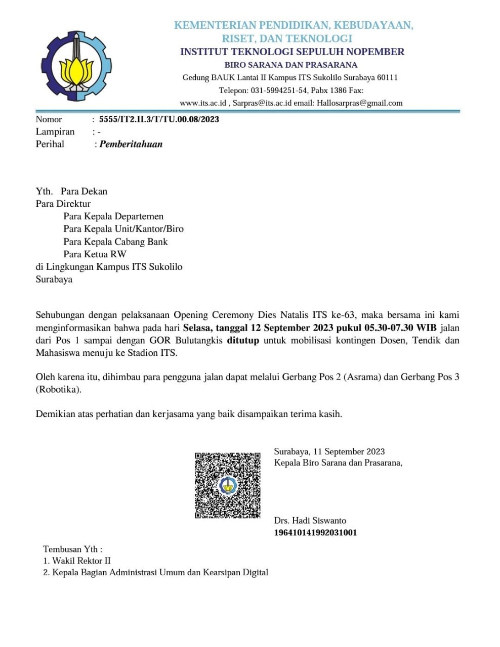 Pemberitahuan Penutupan Jalan Opening Ceremony Dies Natalis
