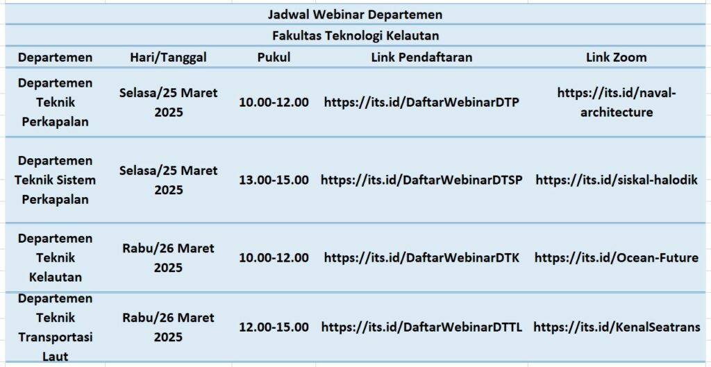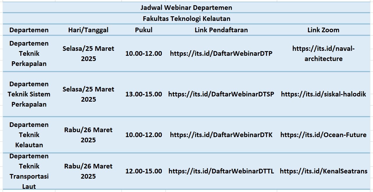 Fakultas Teknologi Kelautan memiliki 4 Departemen :