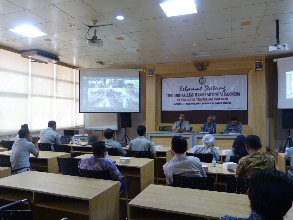 Kunjungan kerja Fakultas Teknik Universitas Indonesia diterima langsung Dekan Fakultas Teknik Industri – ITS Dr. Bambang Lelono Widjiantoro, ST., MT dan Wakil Dekan Dr. Wawan Aries Widodo, ST., MT“Tujunnya dimaksudkan untuk mempererat kerjasama antara Fakultas Teknologi Industri- ITS dan Fakultas Teknik – UI dalam pelayanan administrasi bidang pengajaran dan pendidikan, penelitian, serta saling tukar informasi untuk peningkatan mutu Fakultas”Diharapkan dalam kegiatan kunjungan kerja ini kedepannya Fakultas Teknik-UI dan Fakultas Teknologi Industri-ITS dapat meningkatkan kerjasama dalam waktu yang akan datang.