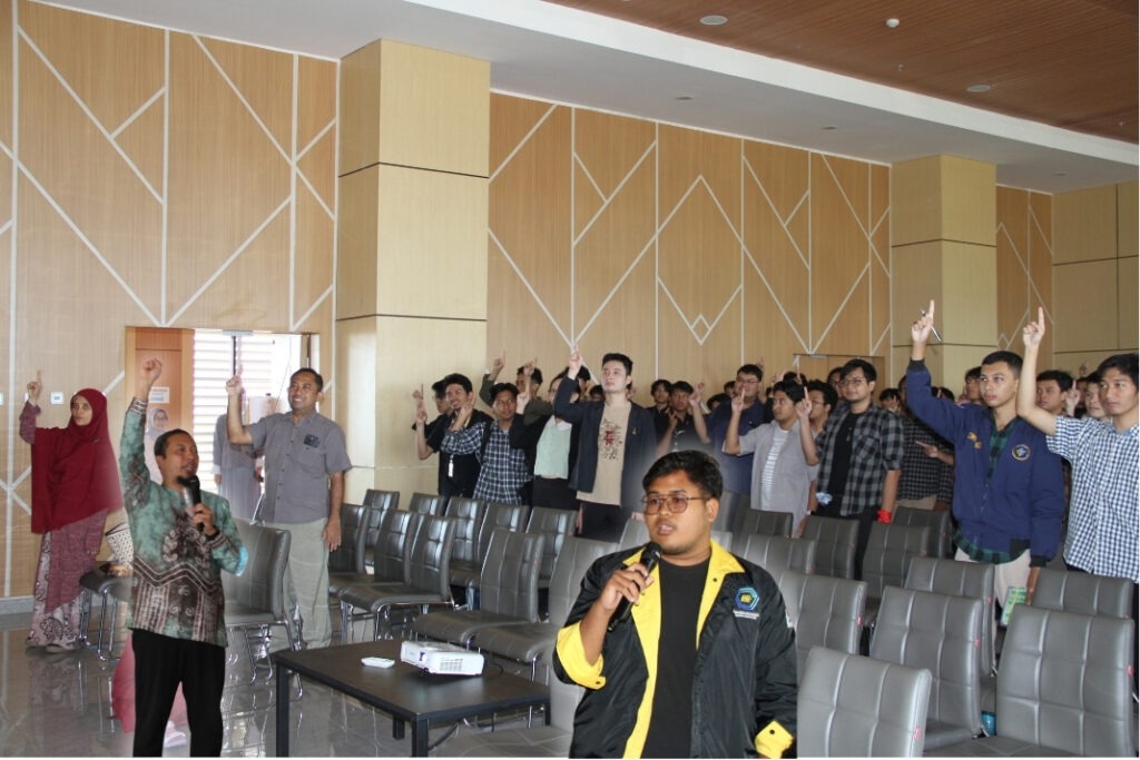 Gambar : Mahasiswa Teknik Komputer ITS antusias mengikuti instruksi yang dipandu dr. Zain Budi Syulthoni, Sp.KJ.
