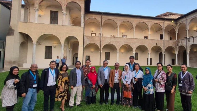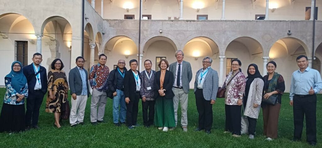 Gambar : Prof. Gamantyo Hendrantoro (tengah) bersama para delegasi universitas di Indonesia dan manajemen ASEA-UNINET dalam sidang pleno di Brescia, Italia.