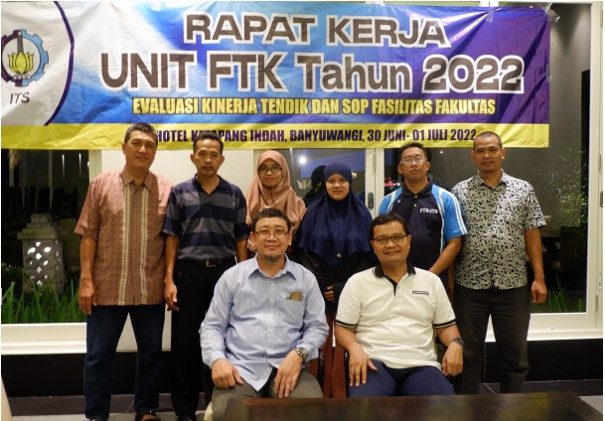 Fakultas Teknologi Kelautan (FTK) menggelar Rapat Kerja Tahun 2022. Setelah melewati masa Pandemi Covid – 19 (Tahun 2020-2021) biasanya Rapat Kerja dilakukan secara Online, maka pada Tahun 2022 di laksanakan secara Offline dikarenakan angka Covid-19 terus menurun dan Pemerintah Pusat memperbolehkan Aktivitas tetapi masih menjaga protokol kesehatan. Rapat Kerja Tahun 2022 ini dilaksanakan pada hari Jum’at, 01 Juli 2022 di Hotel Ketapang Indah Banyuwangi dengan tema “Evaluasi Kinerja Tendik dan SOP Fasilitas Fakultas” dan di hadiri oleh :