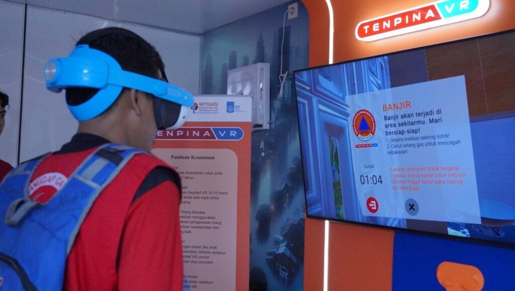 Tim riset TENPINA VR di bawah koordinasi Bu Siska Arifiani, S.Kom., M.Kom., dosen Departemen Teknik Informatika ITS, menghadirkan inovasi realitas maya (VR) sebagai bagian dari strategi mitigasi bencana yang diinisiasi oleh BPBD Jatim. Teknologi ini dirancang agar dapat digunakan oleh para pengunjung Taman Edukasi Bencana BPBD Jatim, baik dari kalangan pelajar maupun masyarakat umum, guna meningkatkan pemahaman mereka terhadap berbagai situasi kebencanaan secara lebih interaktif dan mendalam.