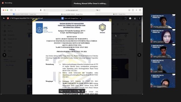 Sesi pemaparan tiap Departemen pada Rapat Kerja BEM FTEIC 2021.